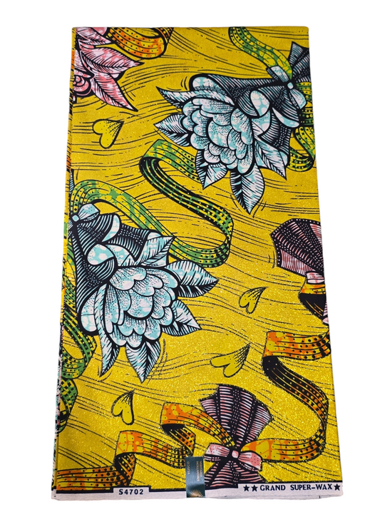 ANKARA AFRICAN FABRIC, KENTE GOLD REAL AFRICAN WAX 6YARDS ( BY HITARTEX )