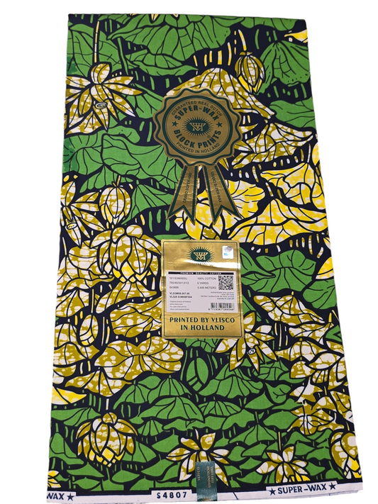 VLISCO SUPER WAX BLOCK PRINTS /AFRICAN WAX PRINT 6YARDS ( 100% COTTON)