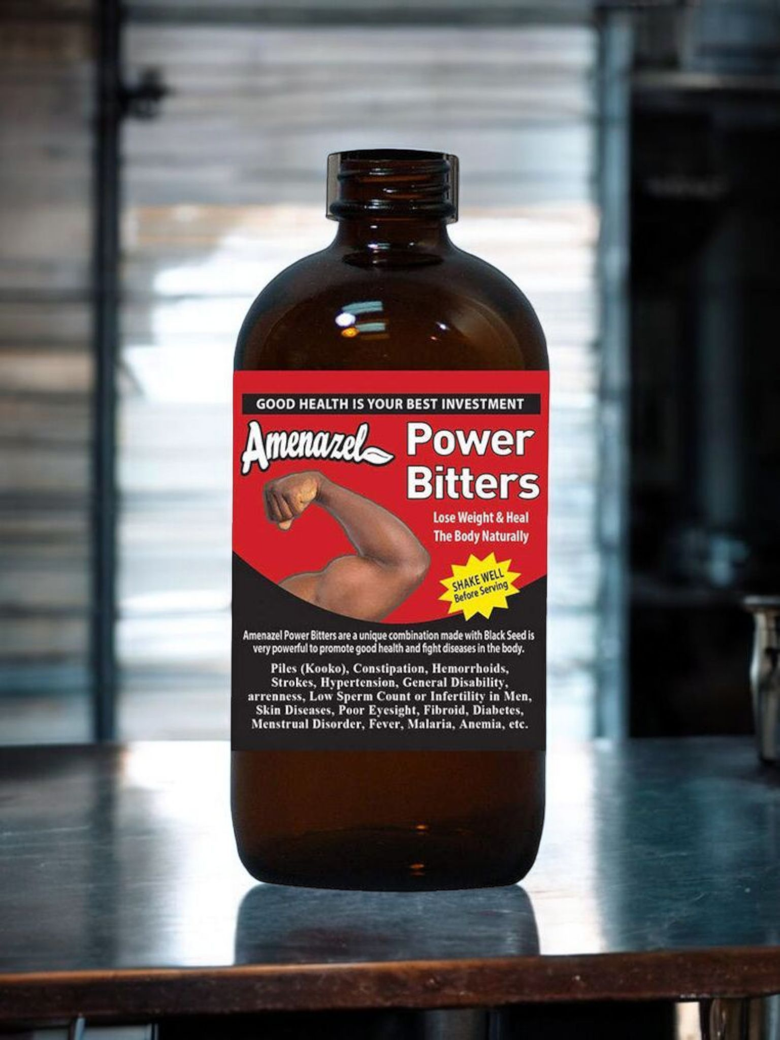 Amenazel Power Bitters is a herbal remedy that is believed to help with various health conditions. It's made with black seed and other herbs, and is said to promote good health and fight diseases in the body.